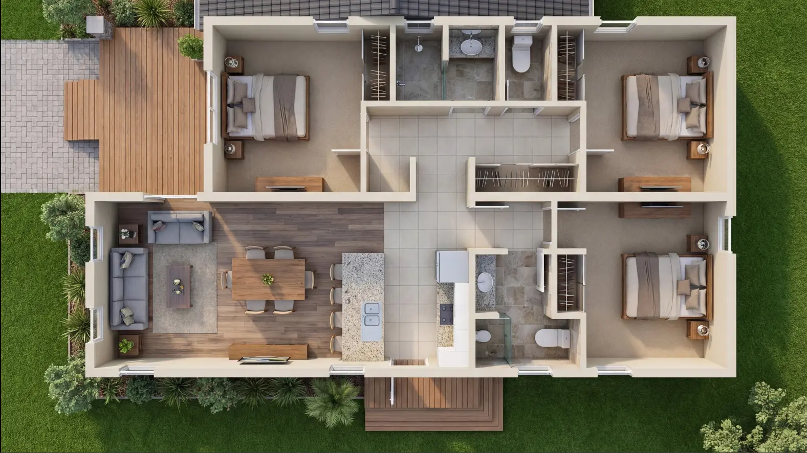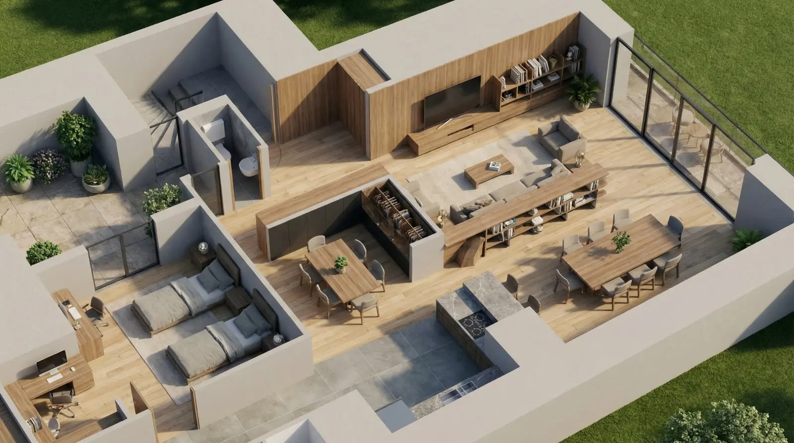 Glissez le curseur pour voir comment DzRender transforme les plans 2D en environnements 3D détaillés.